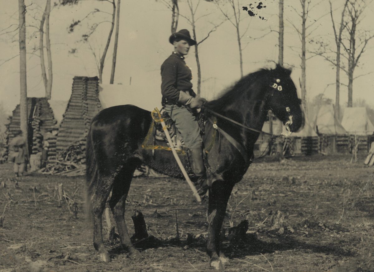 This month is also the 160th anniversary of the Battle of Brandy Station, fought on June 9, 1863. Union troopers, like this unidentified horseman in front of his camp of Brig. Gen. Alfred Pleasonton’s Cavalry Corps of the Army of the Potomac inaugurated the Gettysburg Campaign when they splashed across the Rappahannock River and surprised Maj. Gen. Jeb Stuart’s Cavalry Division of the Army of Northern Virginia. More than 20,000 horsemen fought in the Battle of Brandy Station, the largest cavalry fight of the Civil War. Hooves thundered, cannons boomed and sabers clashed as the Federals tried to capture the high ground of Fleetwood Hill and Confederate countercharges swept across the fields.