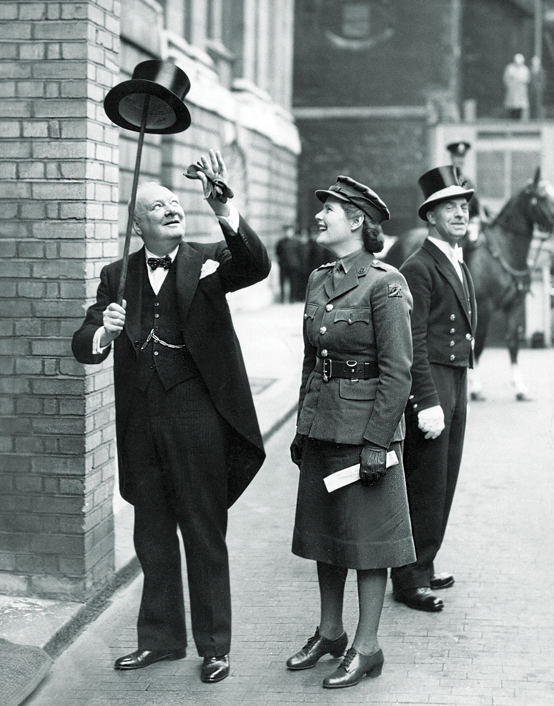 Churchill could be an awful lot of fun. One of my favorite scenes in the book is a get-together at Chequers, the prime minister’s country house. Churchill, wearing a blue siren suit and a gold silk dressing gown, gets out his bayonet. As martial music plays on the gramophone, he proceeds to do his drills in the Great Hall. His many guests are either awestruck or laughing hysterically.