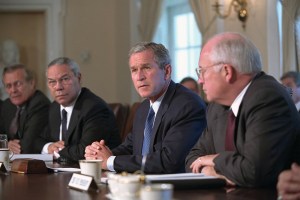 That same month al-Qaida militants and the organization’s founder, Osama bin Laden, escaped from the Tora Bora cave complex in eastern Afghanistan into neighboring Pakistan. In 2003 President Bush declared an end to major combat operations, and the United States and its allies set about rebuilding the Afghan state, military and police.