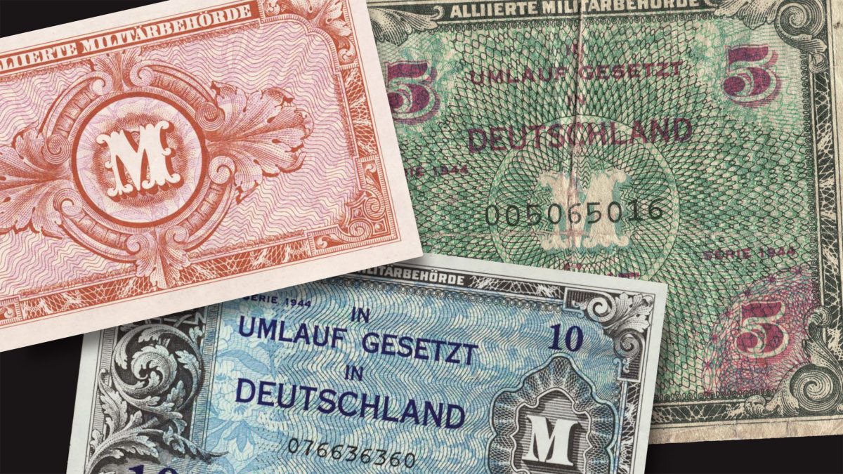So instead, even as the war raged on, the Americans printed billions of dollars’ worth of occupation currencies—German marks, Italian lire, Japanese yen, Czech kroner, and so on. The currencies were in the same denominations as the local money they would supplement, but had different markings. Marks printed for use in Germany were labeled “Alliierte Militärbehörde” (Allied Military Authority). The Americans eventually produced over 500 million notes of what came to be known as “Allied Military Marks,” or AMM. Their total face value was more than 15 billion marks.