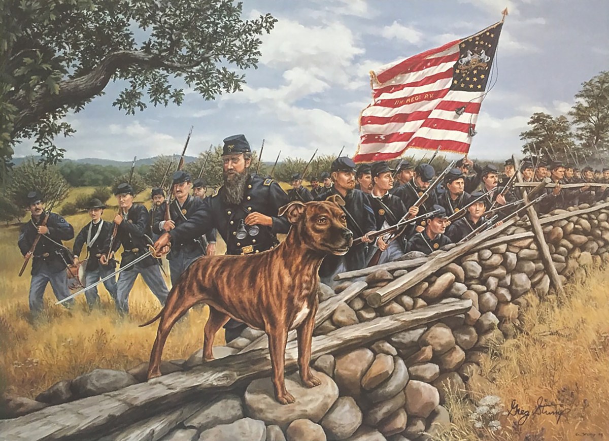 Grayfriars Bobby, a Scottish Skye Terrier known for once guarding his owner’s grave in Edinburgh for 14 years, is an apt reminder of the deep and long connection and affection between dogs and humans throughout history. For as long as there have been soldiers in the earliest formed armies, they have had dogs as pets and mascots. In a personal, modern example, my son’s Army scout platoon in Afghanistan adopted a female Afghan Kuchi puppy that it named “Scout.” Scout was so special and important that Jason went through considerable effort to have her sent home when he left, and she lives happily with him in the United States today. At Antietam in September 1862, countless units in both armies were accompanied by faithful canine companions, and many of them went into battle alongside their human comrades.