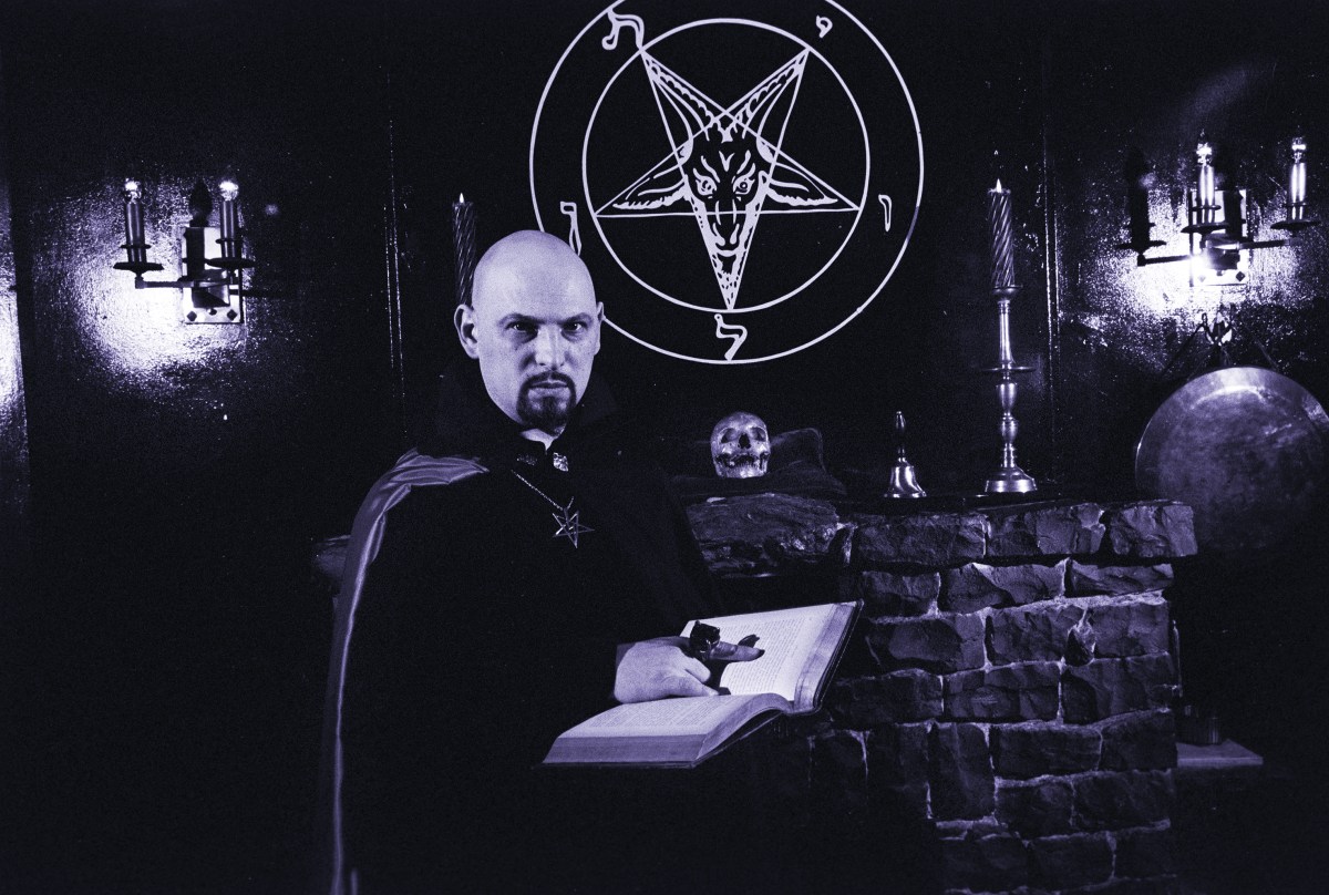 A few months later, in May 1967, LaVey summoned the media to Black House for the “satanic baptism” of his daughter, Zeena. The three-year-old sat on the altar—featuring, of course, a naked woman—while Zeena’s dad, draped in black robes and sporting a horned cowl, invoked the new faith’s old lord: “In the name of Satan, welcome a new mistress, Zeena, creature of ecstatic magic light…We dedicate your life to love, to passion, to indulgence and to Satan, and the way of darkness. Hail Zeena! Hail Satan!”