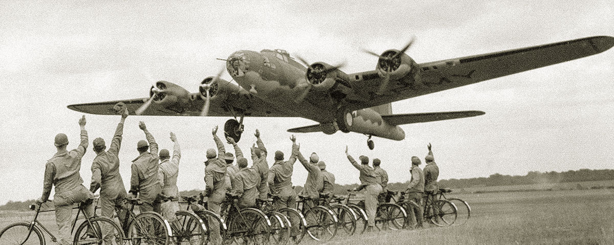 The first picture of the “Flying Fortress.” With planes of this type, the construction of which requires two million hours of labor, Roosevelt wants to win the war in the air. The appearance of the plane was celebrated with typical American bluff…where these giant planes appear over Europe, they become most welcome targets of our gunners.