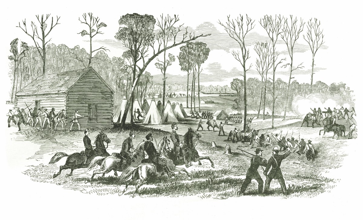 The hour marked by the first cannon shot was seven. The first fire of our men was very effective. The Confederate line fell back, rallied, came forward, received another volley, and again fell back, when our colonel, who was behind the left wing, cried out, “Retreat, and save yourselves.”