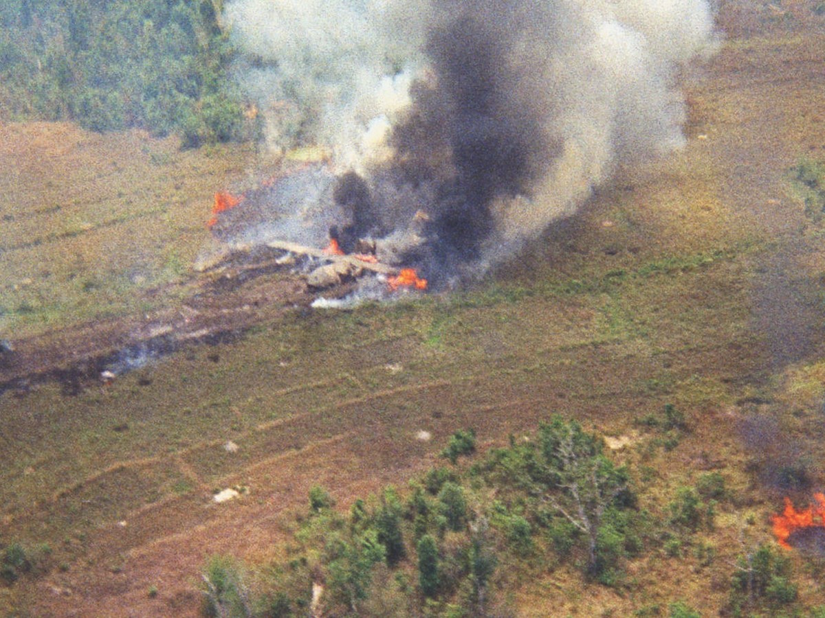 The crew of an Air Force C-130 transport plane had a narrow escape after they crashed near An Loc.