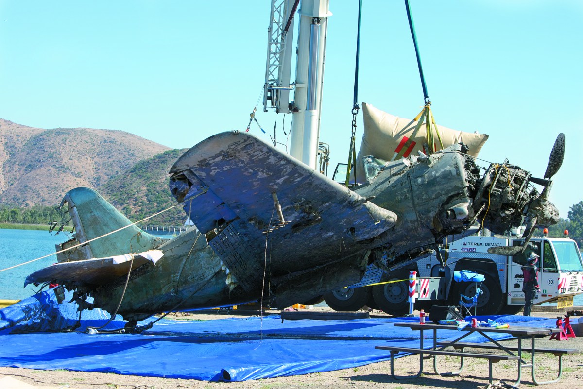 The Helldiver lifted from the water of the Lower Otay Reservoir on August 20 had been ditched by Ensign E.D. Frazer after an engine failure during a training flight from the deck of the carrier Wasp, cruising off the California coast. Frazer and his rear-seater, Joseph Metz, climbed out of the still-floating bomber, swam ashore and casually hitchhiked back to their land base, Brown Field, in San Diego. Neither Frazer nor Metz are still alive, but Frazer’s son, Richard, was present when his late father’s airplane came out of the water. He looks forward to visiting Pensacola with his grandchildren, to show them the airplane their great-granddad flew.
