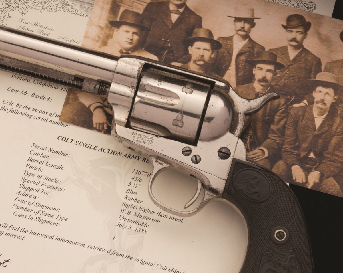 It is not known whether Bat ever had to fire the gun in self-defense. But what adds a touch of intrigue to this historical Colt is that it turned up in southern California in 1995—a place where Masterson was never known to have hung his hat—and was sold for just the value of the gun itself, with its priceless history unknown until the next purchaser obtained a factory letter on it. Masterson undoubtedly packed the six-shooter for a while himself. But where did it go after that, when its historical ownership was lost to its mid-20th-century owners? Unfortunately, that part of the gun’s history will probably never be known.