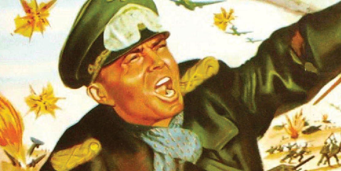 We’ll look at Rommel in the next installment of “Battle Films,” but Rommel cannot be appreciated without first understanding The Desert Fox, a 1951 biopic in which British actor James Mason portrays the German field marshal. The film is one of the major postwar foundations of the Rommel myth. Based upon a 1950 biography by Desmond Young, an admiring British brigadier, The Desert Fox purports to recreate the fruits of Young’s investigation into the circumstances of Rommel’s death. We know that Rommel somehow became linked to the plot to assassinate Hitler and that he took cyanide rather than undergo a show trial, but the details of his involvement remain unclear. Not so in The Desert Fox. The film shows Young conducting extensive research to get at what appears to be the authoritative truth, which is then dramatized in a flashback that takes up most of the film.