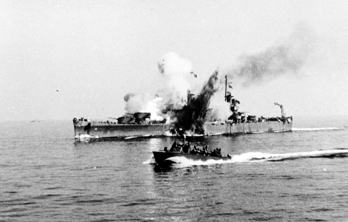 The sinking of Roma on September 9 heralded the start of a sharply more dangerous phase. Just two days later, U.S. Army general Mark W. Clark stood on the bridge of his command ship, Ancon, watching the approach of the light cruiser Savannah. The ships were off Salerno, supporting the Allied landings on the Italian mainland. Suddenly Clark heard “a terrific screeching noise” that “seemed to be heading directly toward the Ancon.” But, instead, a Fritz X plunged into the cruiser’s No. 3 turret, exploding deep within the ship.“Instantly, all was chaos, smoke, blood, and death,” as a navy report later described the scene. The blast ripped open the hull and seawater flooded in. The forecastle was awash within minutes and the ship seemed almost certain to go down. Nearly two hundred sailors were killed in the blast and fire, with most of the gun crews asphyxiated in their turrets by smoke and fumes. The blast knocked out all the ship’s boiler fires, leaving it without power. Heroically, and against all odds, the crew managed to right the seriously listing vessel and get the boilers relit, and Savannah was able to limp into Malta. Four crew members trapped in the radio room were freed only when workers in Malta, sixty hours later, drilled and chipped their way through the steel deck to reach them.