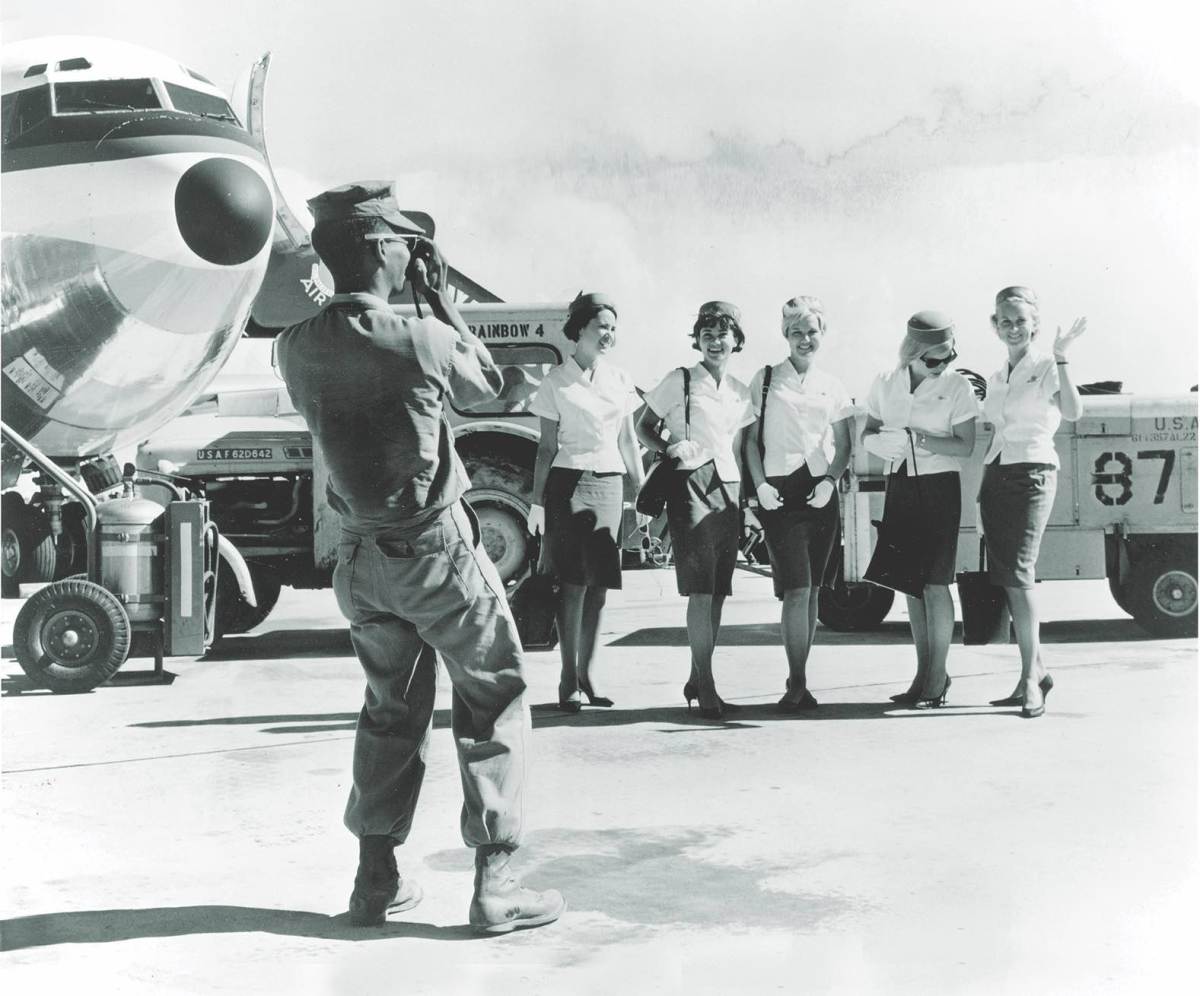 Far from living the chic image of international jet-setters, American flight attendants — numbering more than 20,000 by 1967 — worked punishing schedules, earned wages often lower than those of cleaning crews, were portrayed as sex objects rather than crucial safety professionals, and lost their jobs if they gained weight, became pregnant or married.