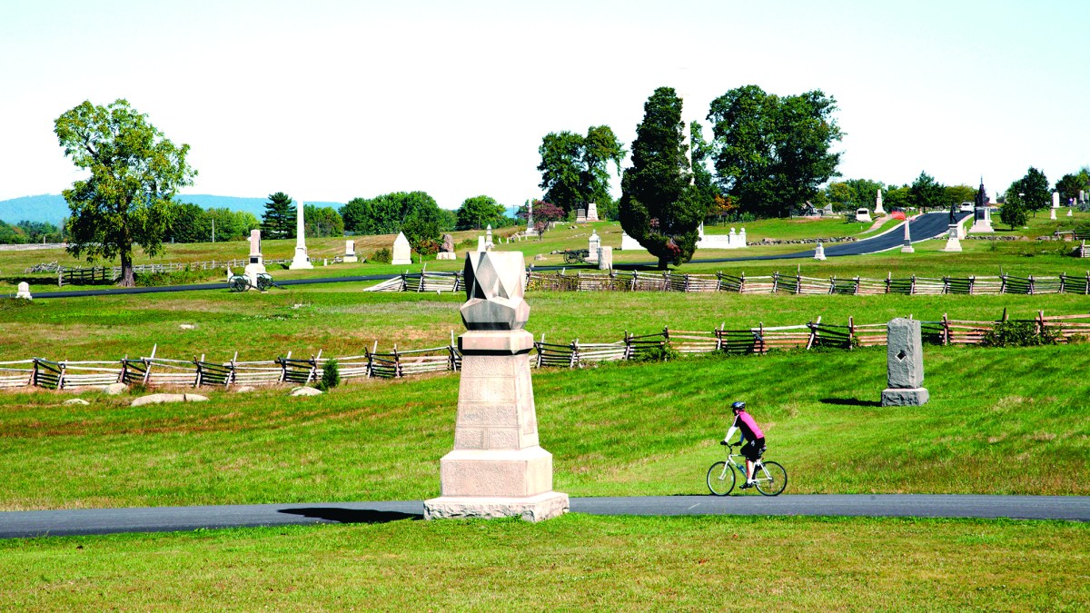 Whether you’re a cycling enthusiast, history buff, or both, Sue Thibodeau’s Bicycling Gettysburg National Military Park: The Cyclist’s Civil War Travel Guide is a must-have for your next visit to Gettysburg. In fact, this 286-page book is so chock-full of useful maps, photographs, and reference information about the battlefield’s monuments,farm buildings, and areas of interest that it should be in the daypack of anybody touring the park and/or town of Gettysburg. Thibodeau, a cyclist and former teacher, has compiled a series of bicycle routes, complete with maps and turn-by-turn directions, that can be completed in a full day ride around the battlefield, or broken up into segments for shorter rides. The varied maps offer any cyclist an opportunity to follow a route, no matter their skill level. Her detailed course instructions include realistic cautions about hills and terrain, and helpful time estimates with or without stops for sightseeing. The book itself includes the maps for the full day loop. Companion maps for 12 smaller routes can be purchased separately online in PDF format for nominal fees. After following the book’s Culp’s Hill course on a balmy Saturday morning in May, I’m sold that there may be no better way to tour the battlefield than on two wheels. The opportunity to cruise past the landscape’s open fields, rocky hills, and woodlots, while easily hopping on and off bike for frequent stops to read monuments or signage or to snap photographs, is incomparable. Anybody looking to do the same could only enhance their experience through the use of Thibodeau’s informative battlefield guide.—Reviewed by Melissa A. Winn