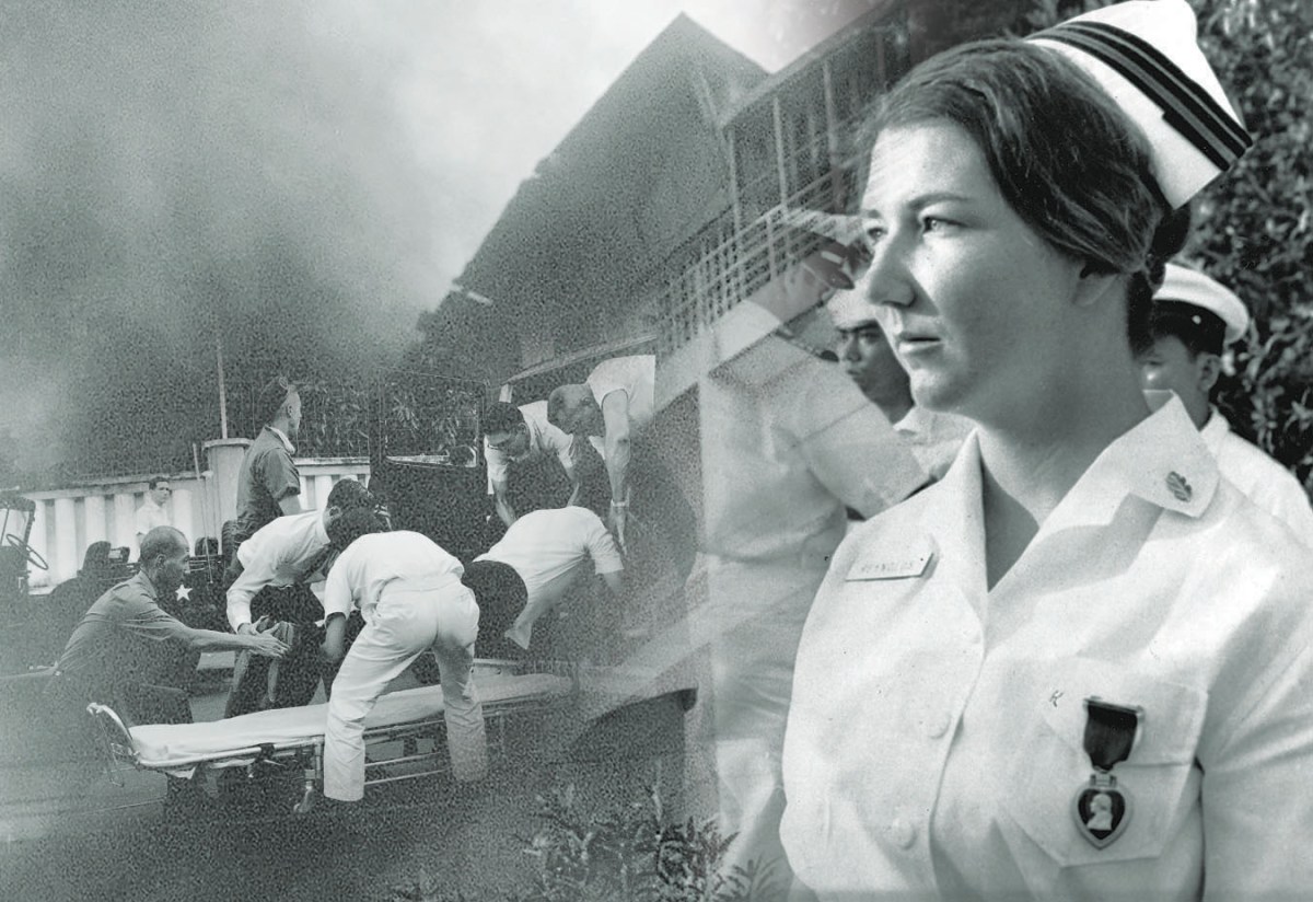 The following Christmas Eve would be the most memorable of her Navy career—as she relates in her memoir Silent Night: 26 Years in the Navy: A Nurse’s Memoir. Reynolds arrived in Vietnam in March 1964 as a lieutenant junior grade. At age 25, she was the youngest of seven Navy nurses at the hospital. The hospital was assigned another nurse in December 1964. She lived with Reynolds and three other nurses at the Brinks Hotel, a bachelor officers’ quarters for the U.S. military.