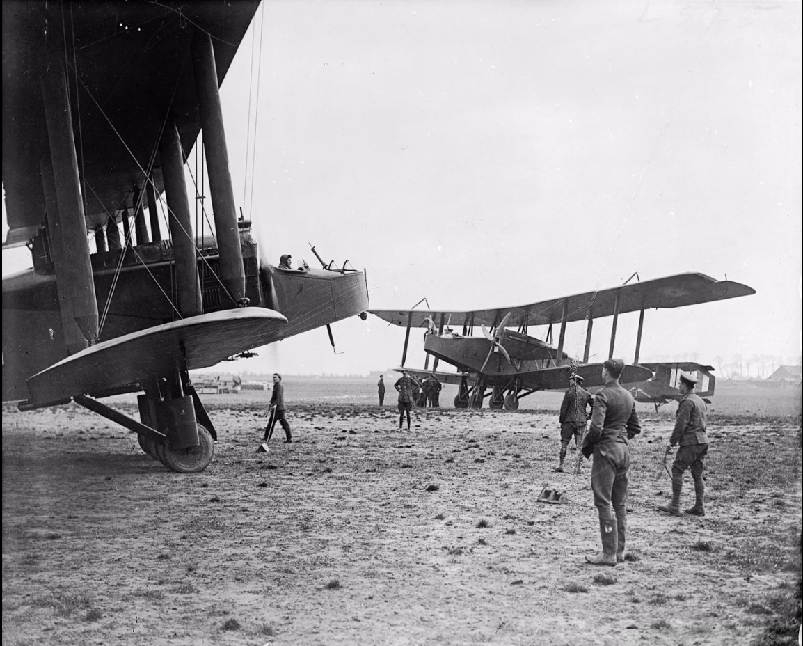 Although the Handley Page bomber was originally developed for the navy, the British army’s Royal Flying Corps (RFC) began to take an interest in it as early as February 1916, when it ordered a dozen O/100s for evaluation. Most RFC staff officers, however, still believed that large numbers of smaller single-engine tactical day bombers, such as the de Havilland D.H.4, would be more effective than fewer large long-range strategic bombers. That attitude changed in the summer of 1917, when twin-engine Gotha bombers began attacking London and other British targets. Ironically, the Germans initiated the Gotha strikes as retaliation for Handley Page raids against their military installations at Ostend and Zeebrugge, in occupied Belgium.