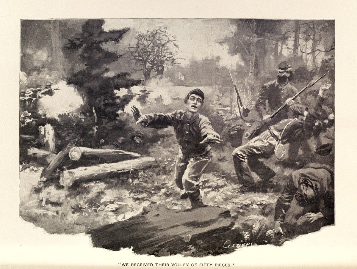 The party was scarcely halfway to the earthworks when some 50 Confederates sprang from concealment with their rifles trained on the Union soldiers, demanding they lay down their guns and surrender. But the scouts realized surrender wasn’t an option, as under Rebel interrogation they might be forced under threat of death to reveal their all-clear signal, putting their fellow Union troops at risk.