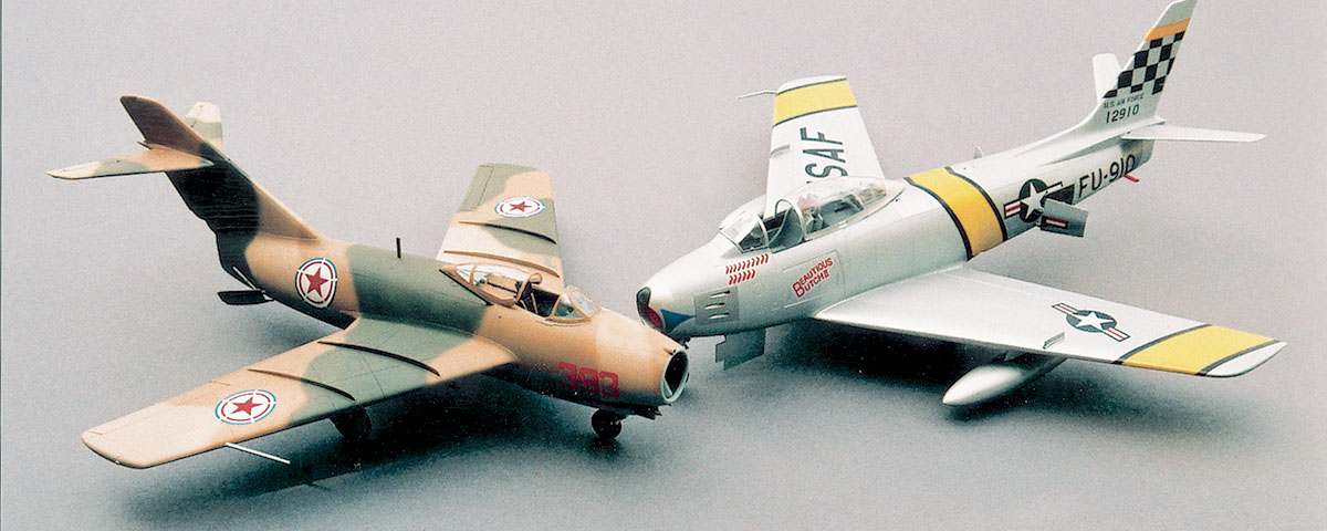 The North American Aviation F-86 Sabres and the Mikoyan-Gurevich MiG-15s that dueled in the skies over North Korea in the early 1950s were considered almost equally matched. The Sabres were faster, but the MiGs were more agile. The MiGs carried heavier firepower, with one 37mm and two 23mm cannons. The Sabres were armed with six .50-caliber machine guns.