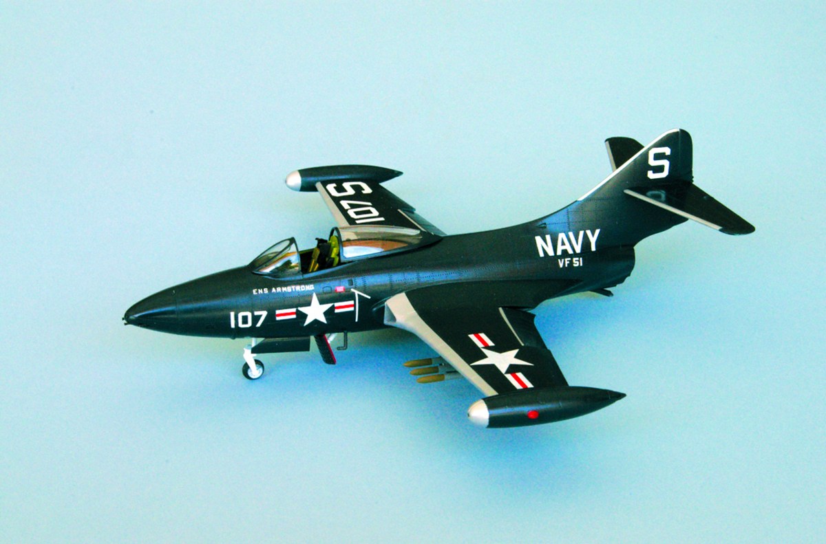 Grumman F9F Panther kits are easy to find in most hobby stores and modeler’s swap meets. To build an accurate 1/48th-scale version of an F9F-2 flown by Ensign Neil Armstrong, you’ll need Trumpeter’s kit No. 02832. For modelers who prefer smaller-scale replicas, there are several 1/72nd-scale kits available, too.