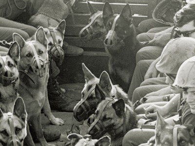 A comical—though potentially fatal—trait began to be observed of Major during battle: He would leap into the air to snap at bullets as they whizzed by or as they created small dirt clouds when they hit the ground.