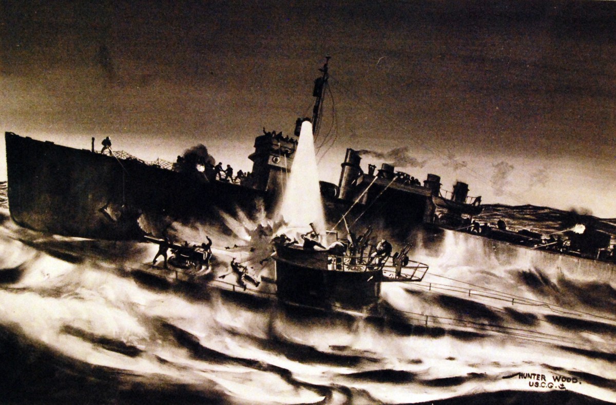 Others improvised. Displaying some American ingenuity, Boatswain’s Mate Walter Kruz managed to knock a German into the icy Atlantic after physically launching an empty 4-inch shell casing at him.