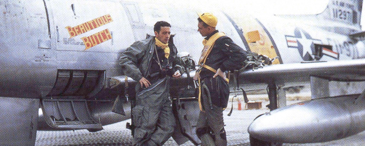 Ironically, one of McConnell’s outstanding talents—his expertise in controlling the F-86 in simulated hydraulic failures—probably cost him his life. On August 24, 1954, while flying the newest F-86H from Edwards Air Force Base as a North American test pilot, McConnell suffered total hydraulic failure. He should have ejected at that moment, but Mac tried to land on a dry lake using only throttle and rudder. He had almost made it when unexpected air turbulence caught him. He tried to eject, but he was too low. It was a sad end for one of the best American airmen to fly in Korea.