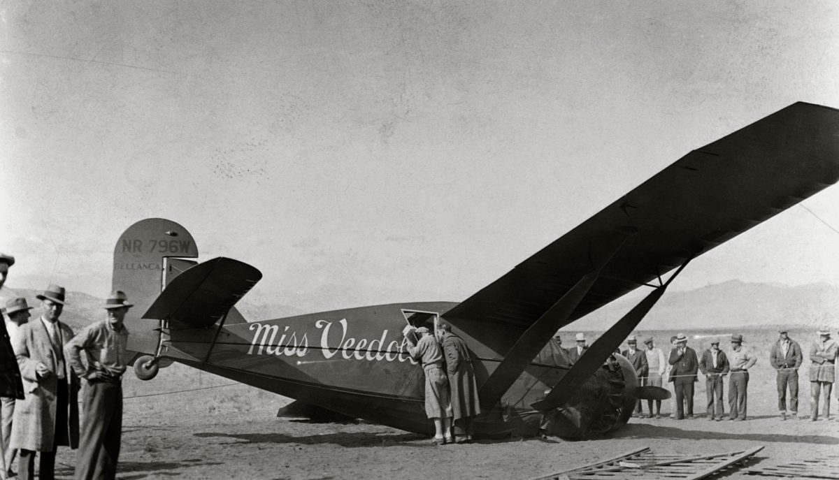 Pangborn and Herndon brought “Miss Veedol” down, sliding to a stop in a field outside of Wenatchee, Washington, early on the morning October 5, 1931, completing their transpacific odyssey. (© Museum of Flight/Corbis via Getty Images)