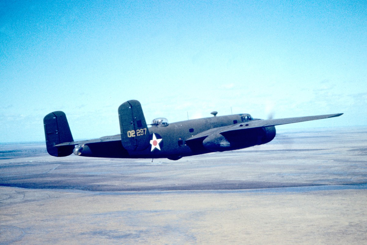 The B-25 lacked any rear guns, a problem Greening solved with an imaginative stroke of deception. Two long broomsticks painted black were bolted through holes bored in the tail. At a distance they gave the appearance of being guns and might deter Japanese fighters from rear attacks.