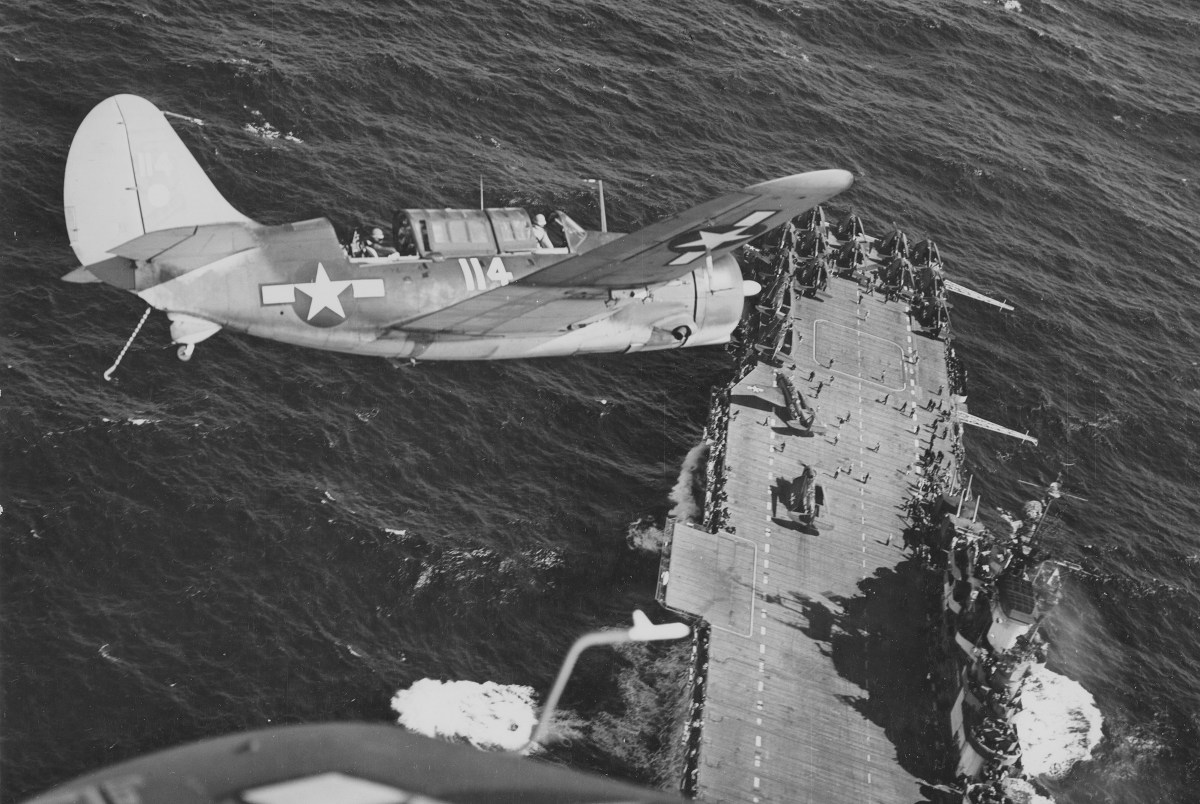 The Helldiver first saw combat with bombing squadron VB-17 from the carrier Bunker Hill during an attack on Rabaul on