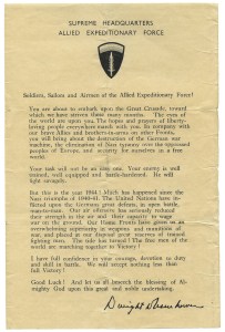 On D-Day, British prime minister Winston Churchill went before the House of Commons to report that everything was going as planned (though in fact it wasn’t). “This vast operation,” he said, “is undoubtedly the most complicated and difficult that has ever taken place.” On this page we present some memorable objects from that operation, beginning with the message to troops issued by General Dwight D. Eisenhower, the supreme commander of the Allied forces in Western Europe, and the M1 Garand semiautomatic rifle, which General George S. Patton famously branded “the greatest battle implement ever devised.”