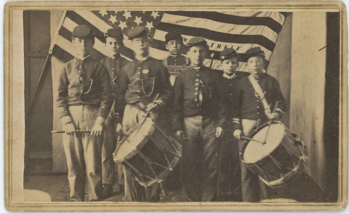 Featured on this Civil War carte-de-visite are members of the 101st Pennsylvania’s drum corps. The photo’s exact date is unknown, but “Whitehall” on the flag behind the boys means it was taken after the Dec. 16, 1862, Battle of Whitehall, North Carolina.