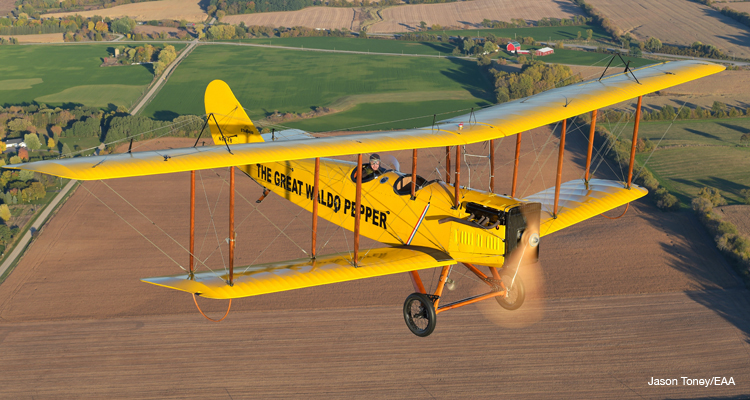 The EAA airplane is painted in the yellow and black of fictional barnstormer Waldo Pepper, though the real movie plane is in the Historic Aircraft Restoration Museum, in suburban St. Louis. But to see the best-ever actual J-1 flying footage—as well as Jennies, a Spad, a Fokker Triplane and a Bücker Jungmeister—stream The Great Waldo Pepper from Netflix or Amazon. An oft-neglected Robert Redford film produced, directed and co-written by former U.S. Marine Corps pilot George Roy Hill, with flying sequences by Frank Tallman and a brave collection of stunt aviators, it has some of the finest aerial footage ever shot—an evocative reminder of the days before close-but-no-cigar computer-generated imagery.