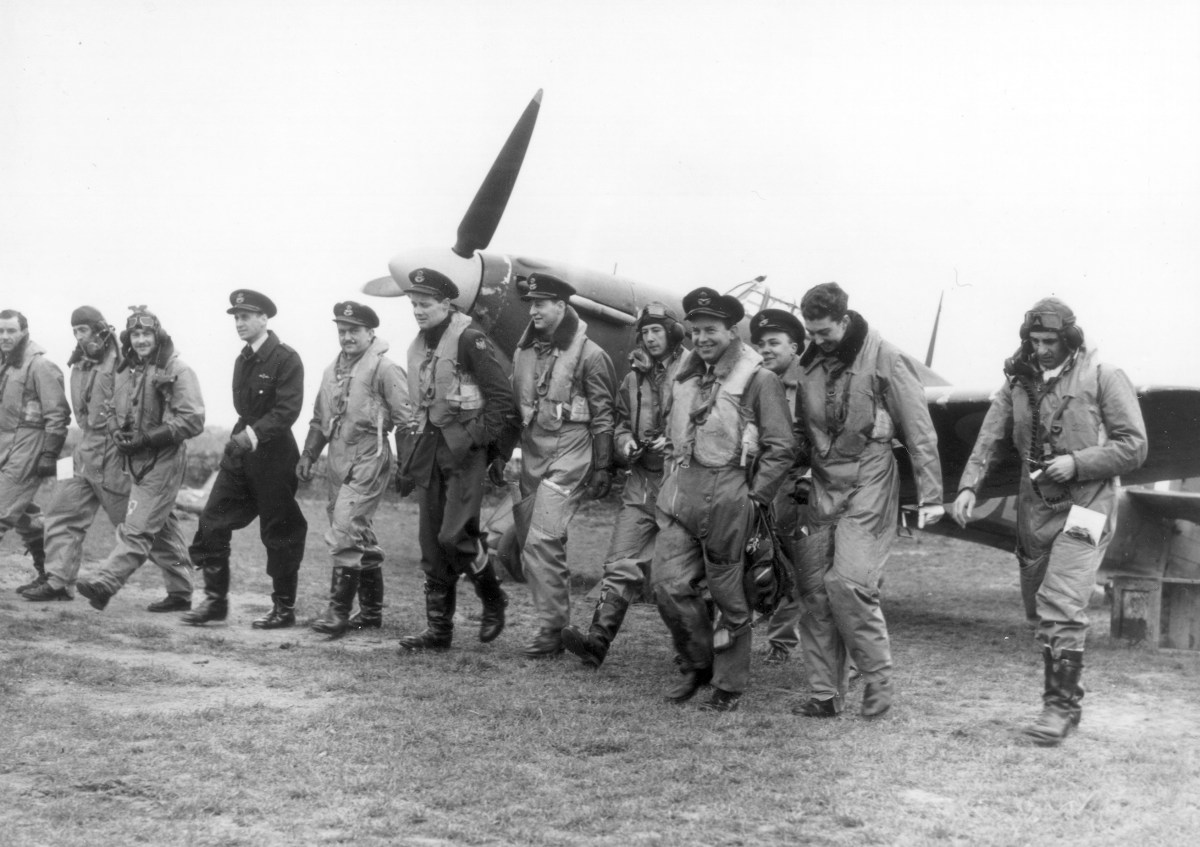 After flight training in the U.S. and Canada, he joined a convoy bound for England. At his assigned base, Campbell then checked out in a Miles Master. With the Battle of Britain already raging, he got three weeks of training in Spitfires, about 25-30 total hours, with no time on instruments.