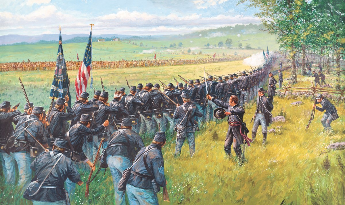 Iverson had erred in not sending out skirmishers, so his North Carolinians did not see a line of Union troops waiting for them—some behind a stone wall, others concealed in woods—until the Federals rose and delivered the first volley. The melee became a slaughter. Although the Union positions north and west of Gettysburg would indeed collapse that day, Iverson’s 1,400-man brigade was effectively erased, with casualties at two-thirds its strength.