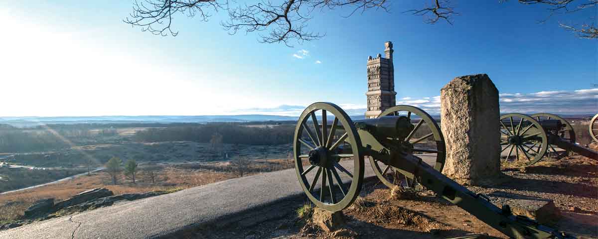 Powers Hill is just east of the Baltimore Pike off of Granite Schoolhouse Lane. It’s worth the short hike to see the three Union battery monuments on the summit. Their guns fired to the northeast and shredded the left flank of Confederate attacks on Culp’s Hill on the morning of July 3. And Maj. Gen. George Meade used Powers Hill as his temporary HQ when the Confederate artillery made his Leister House HQ untenable before Pickett’s Charge.