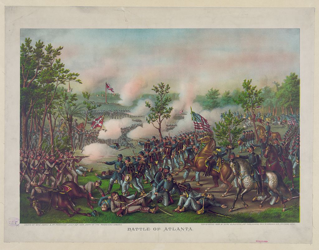In late July 1864, Major General William T. Sherman’s Union army closed in on General John B. Hood’s Confederate army defending Atlanta. On July 20 Hood lashed out against the Union right wing north of the city. Repulsed but undaunted, Hood turned to strike the Federal left wing, Major General James B. McPherson’s Army of the Tennessee, east of Atlanta. He deployed Major General Benjamin F. Cheatham’s corps northeast of the city and sent Lieutenant General William J. Hardee’s corps around McPherson’s left flank with orders to crush the Army of the Tennessee on the morning of July 22. Both corps were then to assail the rest of Sherman’s host.