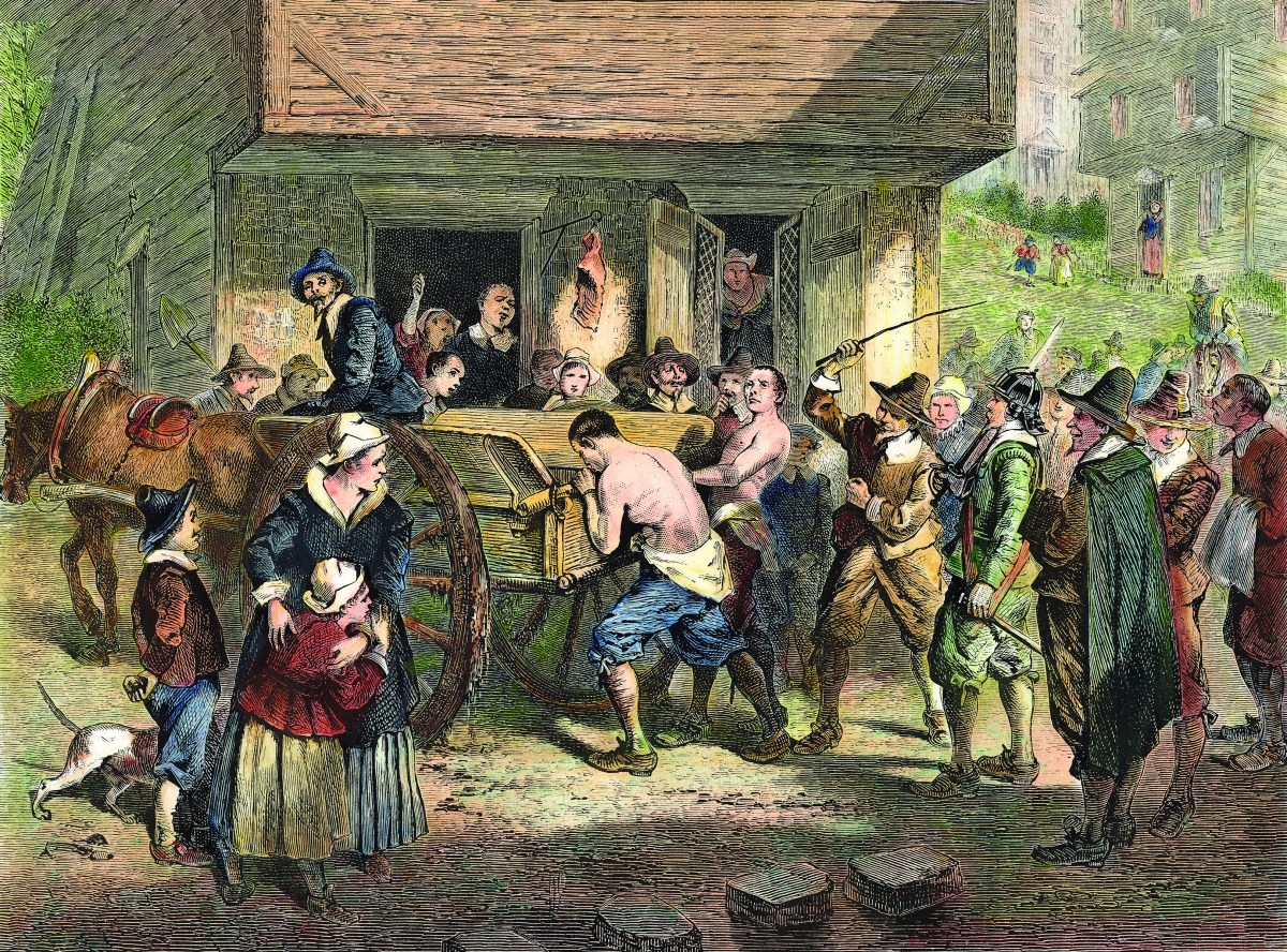 At home and abroad, English society assumed less commercially minded Friends to be anti-government. Quaker missionaries Mary Fisher and Anne Foster sailed from Barbados to Boston in 1656, encountering the wrath of the city’s Puritan leadership. After five weeks behind bars, the two were shipped back to Barbados. They got off light; during 1659-61, the gibbet at Boston Common saw four Friends hanged for merely entering the colony. Around this time, Quaker preachers also were reaching the southern American colonies.