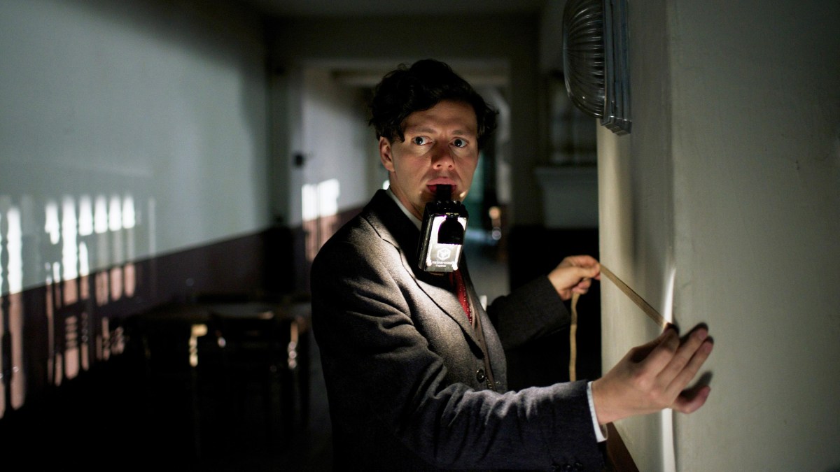 The film begins with Elser carrying out his ill-fated plan—a suspenseful scene full of effective details. As he installs his handmade bomb in the wall behind the speaker’s podium, his breath is rapid and frantic; he is working under threat of being discovered. His fingers ache, his knees are bloody from installing the explosive. It establishes a tense and driving pace for the narrative.