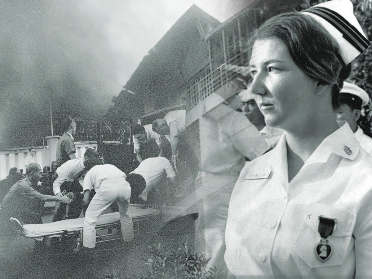 In December 1964 Robbins marked her nine months in-country with a renewed sense of purpose. She meant to attend Christmas Eve Mass, but two men in a four-door sedan changed those plans. She explained: “I didn’t go to Xmas service because the Brink’s BOQ [bachelor officers’ quarters housed in the Brinks Hotel] was just bombed at 6 p.m. and it was all but impossible to get to church from where I live. I heard the explosion and at first thought it was thunder, but when the radio went off the air I knew it was an explosion and a large one. Not a very pleasant way to start the holiday.”