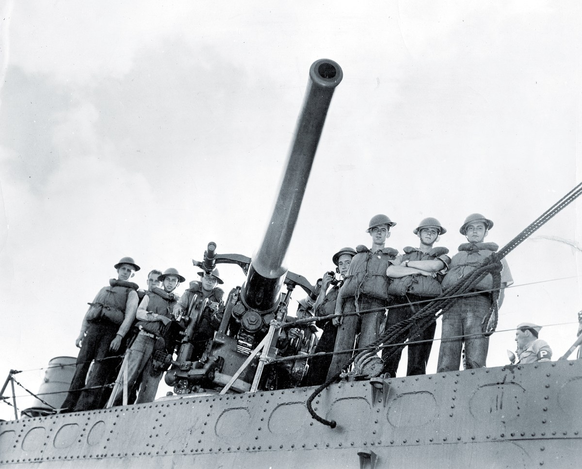 Outerbridge was new to his job, but he knew exactly what to do. “One look he gave,” the helmsman, H. E. Raenbig, later said, “and [he] called General Quarters.” Gun crews galloped toward their mounts, the crew sealed doors and hatches, a demand for ahead-full descended to the engine room, and the Ward shot forward, climbing from five knots to 25, setting a course to get between the Antares and the intruder—a near ramming speed.