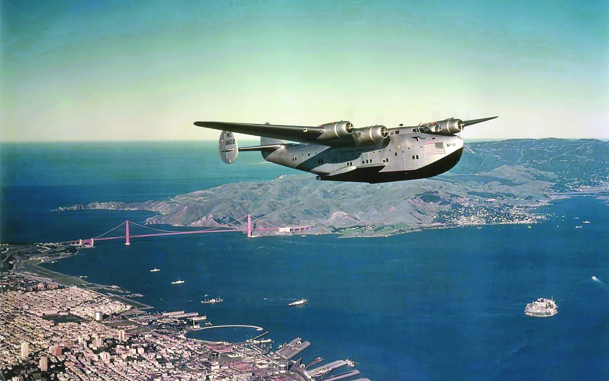 Imagine boarding a luxurious winged ocean liner in midafternoon, then relaxing as it taxis slowly into San Francisco Bay. Suddenly there’s a mighty roar from its four engines and the behemoth accelerates. You watch through portholes as the spray diminishes. Then, almost imperceptibly, there’s a feeling of release as the giant flying boat breaks the water’s surface tension and lifts smoothly into the air. Shortly, at cruise altitude, the seat belt sign goes out and you experience the ultimate in cruise ship luxury: drinks served in crystal and cuisine fit for royalty on china. Some enjoy a berth for the all-night journey to Hawaii or points west.