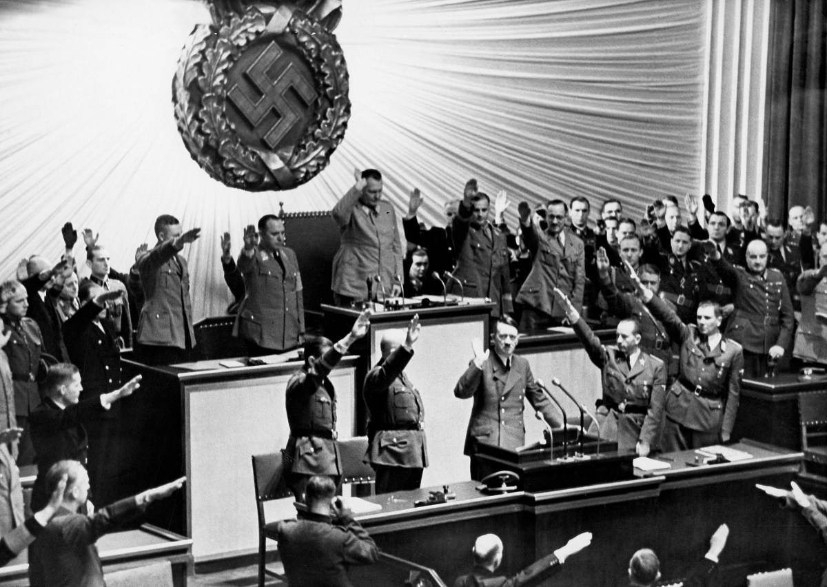 Once he reached Berlin, Hitler phoned and met with Goebbels to review the situation in detail. The propaganda minister documented the exchanges in his diary the following day, as was his custom. Goebbels’s December 8 entry notes that Japan has attacked the United States. “I was…called by the Führer who is extraordinarily happy about this development,” Goebbels writes. “He will summon the Reichstag for Wednesday [December 10] in the afternoon to clarify the German position on this.”