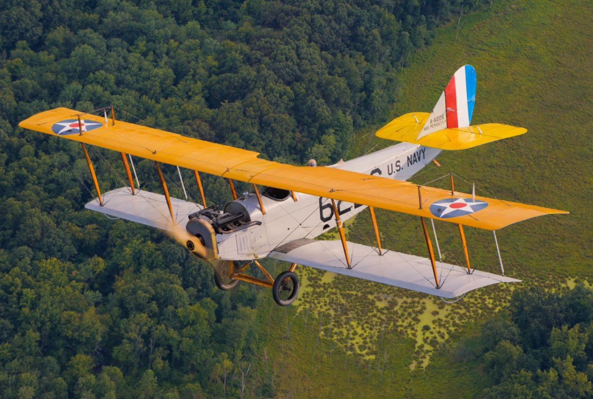 Although Charles Lindbergh bought and soloed in a JN-4D in 1923, he trained in the JN-4H when he joined the USAS in 1924. Lindbergh had this to say about it: “…[I]t is doubtful whether a better training ship will ever be built….Jennies were underpowered…somewhat tricky…splintered badly when they crashed…but when a cadet learned to fly one…he was just about capable of flying anything on wings with a reasonable degree of safety.”