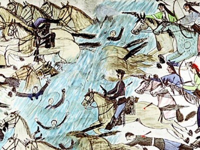 As the Indian wars heated up again the following year, Sheridan, as commander of the Department of the Missouri, planned a winter campaign. He lobbied for and obtained an early end to Custer’s suspension. On November 27, 1868, Custer was back in the saddle, attacking and destroying a Cheyenne village on the Washita River in present-day Oklahoma. Custer’s official report claimed 103 Indians killed, more than 40 of them women and children. Custer’s fame and popularity as an Indian fighter soared and continued to grow as the years passed.