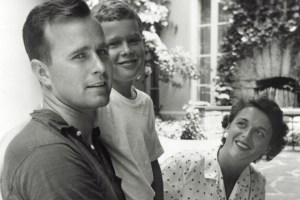 George W. Bush (C) poses with father George Bush and his mother Barbara Bush in Rye, New York, summer 1955. (Photo by Newsmakers)