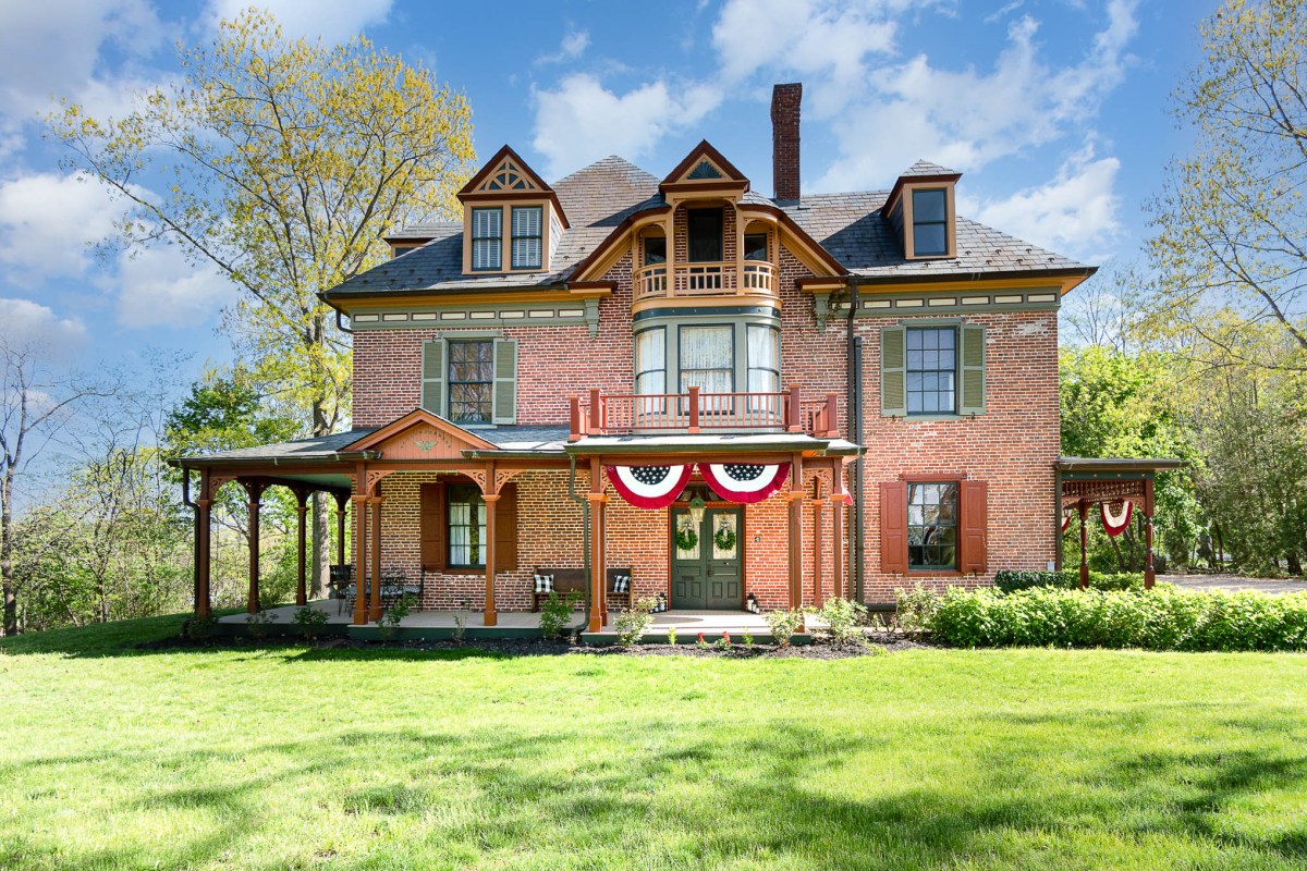 The 5,189-square-foot Victorian mansion has six bedrooms, five bathrooms and formal living room and dining room, a double parlor, eat-in kitchen, four gas fire places, the original brass and crystal chandeliers and sconces, an office, a library, stained-glass windows, clawfoot tub, marble shower, double balcony, wraparound porch and 1.67 acres of land. The murals in the home show Virginia’s Natural Bridge and West Point, New York.