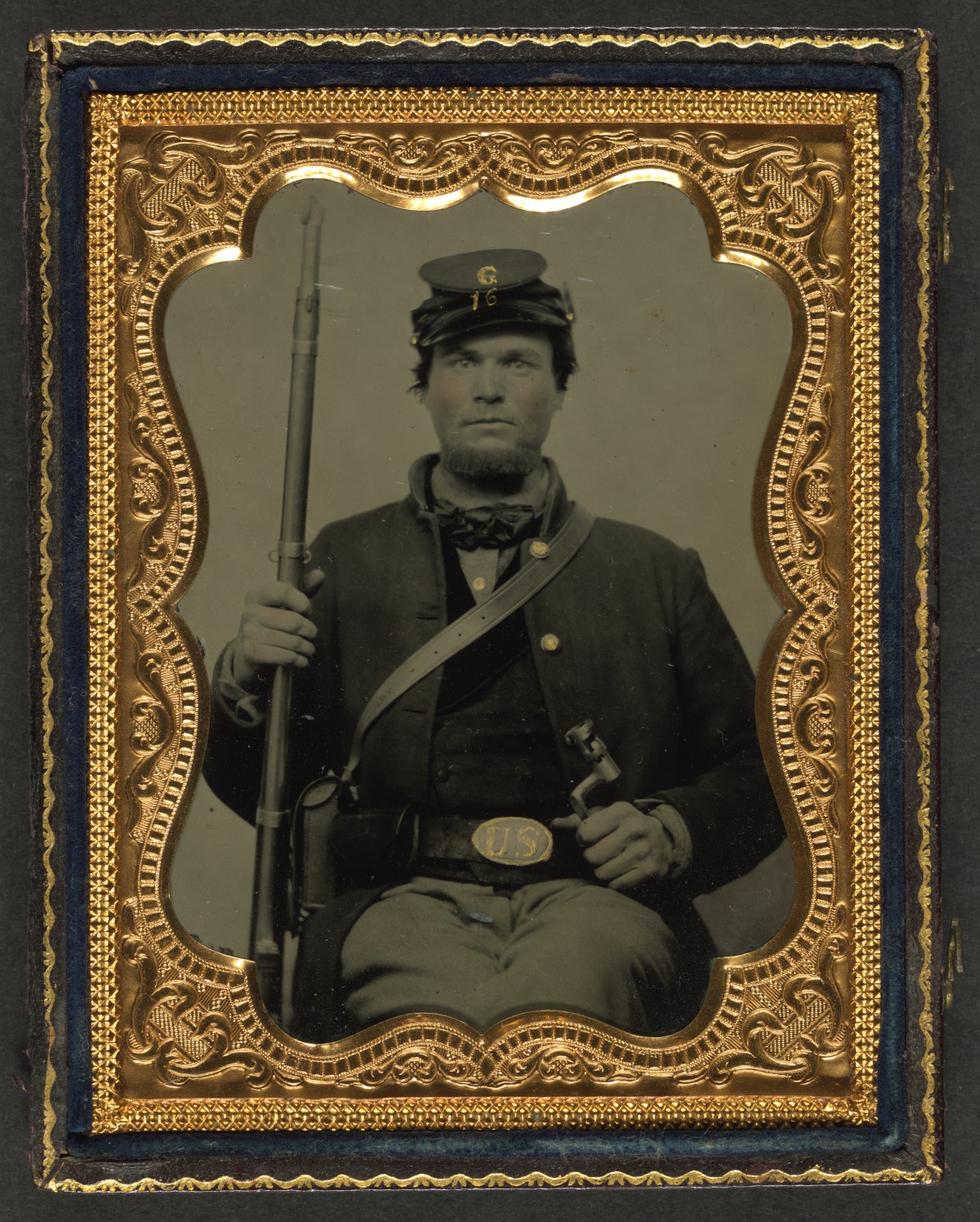 Meet Horace H. Smith. Years ago, I saw his image on display at the Library of Congress, but it was labeled “unidentified.” I zoomed in on a scan of the photo and saw “H.H.S.” scratched on his cartridge box sling. The “G” and “16”on his cap, along with fact that he was wearing a style of jacket only issued by the state of Wisconsin, made for an easy identification.