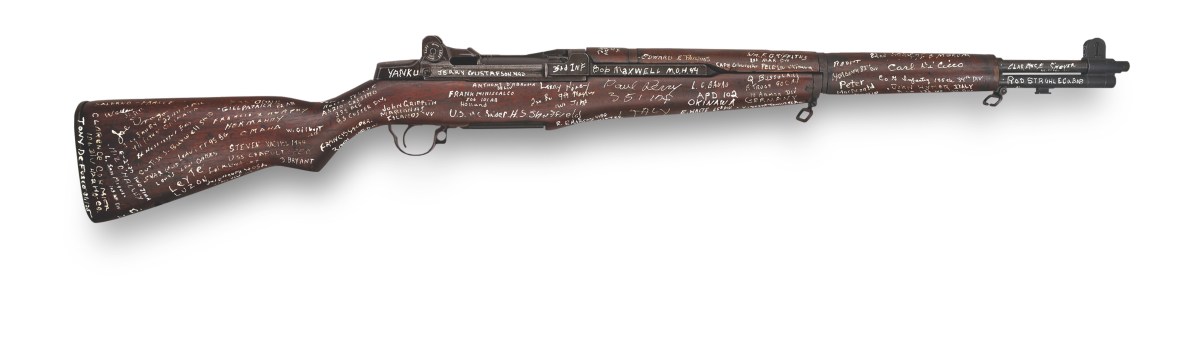 The M1 Garand helped the veterans open up too. You should have seen how these guys came alive holding the rifle! They just started telling me stories. In the first printing of the book, I list the 175 names then on the rifle. The second printing will have 200-plus names. I keep adding signatures to the rifle as I meet more veterans.