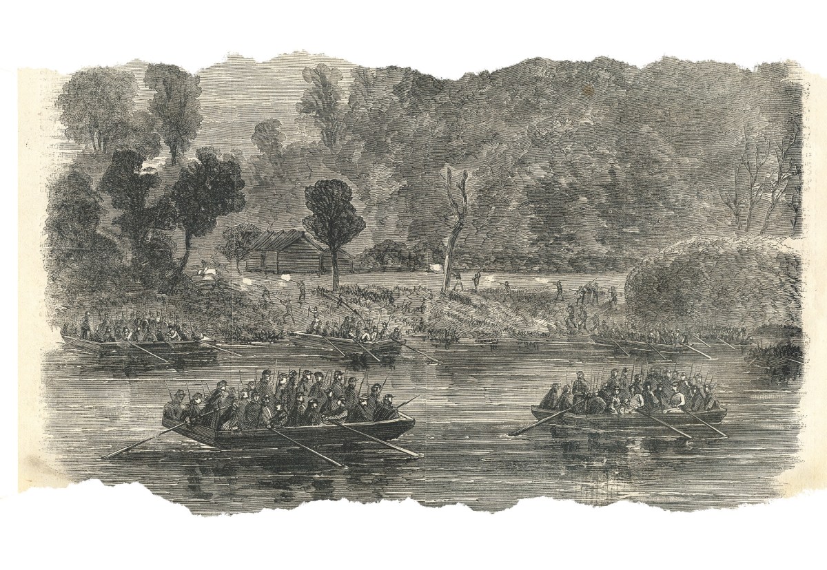 Among those in the lead boat was Corporal Arnold Brandley, who wrote: “All went well until we passed under a tree that had fallen out from the bank and was still hanging by the roots just high enough to allow the boat to pass under; the order was whispered, ‘Everybody down.’” A sergeant named Reeves tried to jump over the tree, but, Brandley wrote, “was not quick enough and…was swept into the cold stream,” adding that Reeves never cried for help. “[W]e passed on in doubt of whether we would ever again see our comrade.” (They would.)