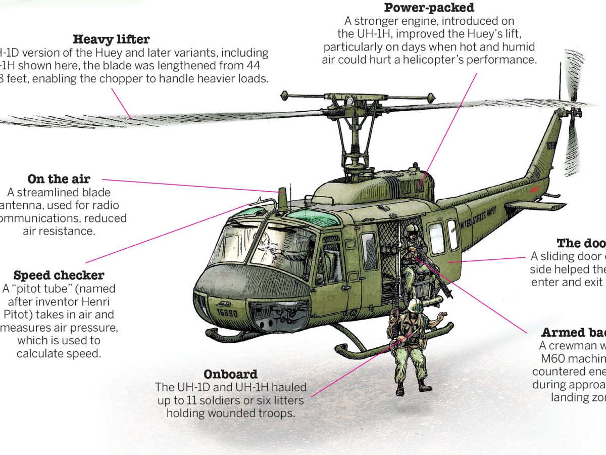 The UH-1 “Huey” helicopter, one of the most recognizable symbols of the Vietnam War, continues to stir memories more than 60 years after American troops first heard the old workhorse’s distinctive whop, whop, whop as it approached for air support, the insertion of reinforcements, mail delivery or medical evacuation.