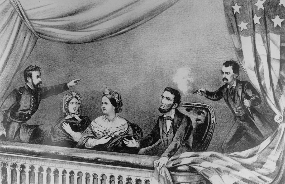 IT WAS IN THE THIRD ACT, when one of my friends called my attention to the President’s box with the remark, “There’s a reporter going to see Father Abraham.” I looked and saw a man standing at the door of the President’s box, with his hat on and looking down upon the stage. Presently he took out a card case, or something of that kind, from his side pocket and took out a card….He took off his hat and put his hand on the door knob, and went into the little hall or corridor back of the box. I then turned to the play. Presently, I can not say how soon, it may have been two, three or five minutes, I heard a pistol shot. I turned to the President’s box and saw a man flash to the front, with face as white as snow, and hair as black as a raven.