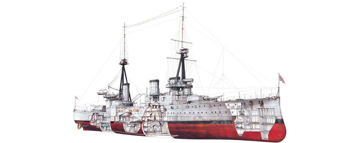 Armament: Eight BL 12-inch guns, 16 QF 4-inch guns, seven Maxim guns, five 18-inch torpedo tubes