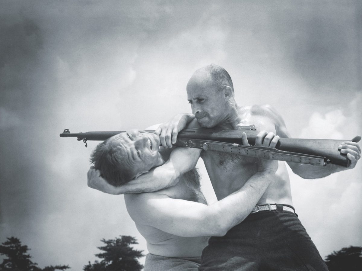 After releasing the trainee, d’Eliscu continued his lecture. He proceeded to deride American-style boxing, with its rules barring foul blows and breaking clean from a clinch and its technique of striking with the fists. “Sportsmanship!” he snarled. If the men ever faced off against German or Japanese soldiers in close-quarters hand-to-hand combat, he told them, there were no rules, and other parts of the body—open palms, elbows, feet—were more effective for striking the vulnerable spots on an enemy’s body. “This—this—this,” d’Eliscu explained, demonstrating a series of strikes. “And he’s ruined.”